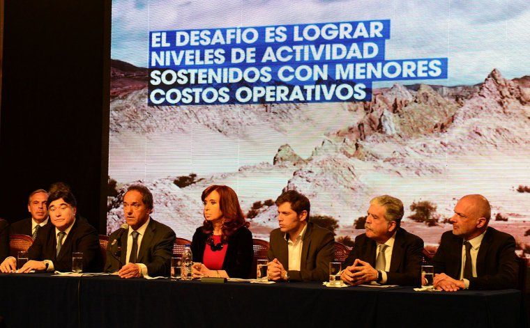 El Alvear Palace Hotel de Buenos Aires fue ayer punto de encuentro de los principales actores de la industria hidrocarburífera con la presidente Cristina Fernández de Kirchner y el candidato presidencial Daniel Scioli. El gobernador bonaerense le prometió a sus pares petroleros que, en caso de ser electo, dará continuidad a los subsidios al crudo y anunció un programa de incentivos al gas natural.