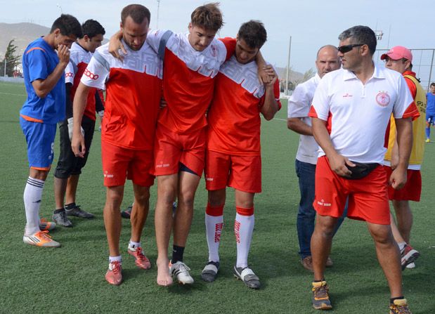 En la primera parte se pudo observar a dos equipos jugando al límite en cada jugada, como si fuese por los tres puntos, y como ejemplo el primer corte del juego fue por un choque entre Iván Calfú y Marcos Rilo, que quedó tendido en el suelo. Y como si eso fuese poco, y la peor parte se la llevó el defensor central de Huracán, Facundo Ercoreca que salió con un esguince en su tobillo derecho (ver recuadro).