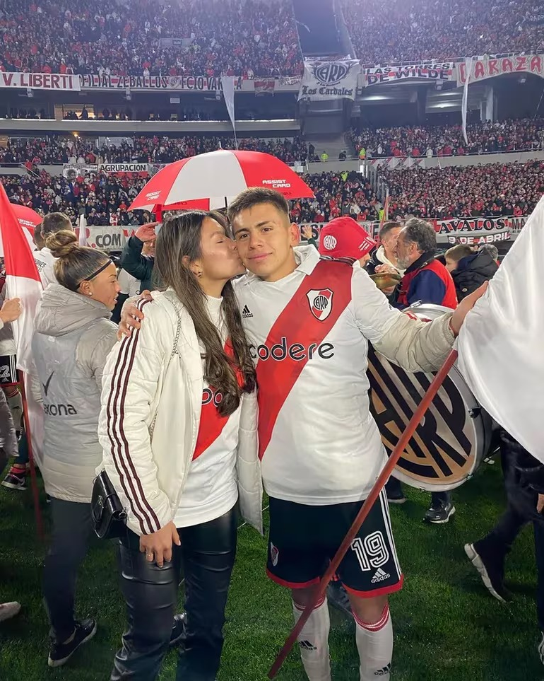 El Diablito coincidió en el campo de juego del Monumental con su novia, Melissa Fernández, integrante de la Reserva del fútbol femenino de la institución de Núñez: ella asistió en condición de alcanzapelotas.