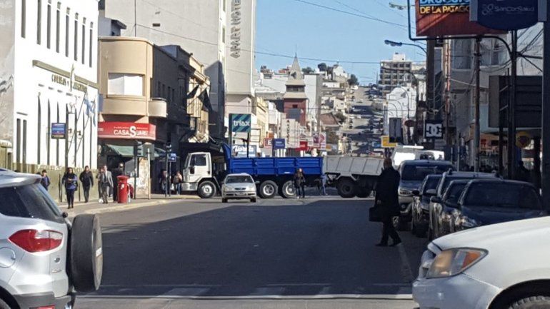 Camiones y máquinas se apostaron desde el mediodía en las inmediaciones del Ejecutivo municipal en reclamo por deudas por los servicios prestado en diferentes barrios de Comodoro Rivadavia durante el temporal. Los manifestantes cortaron el tránsito en Rivadavia y Moreno.