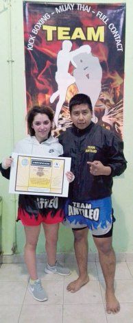 De esta manera, Camila se convierte en la mujer más joven de la ciudad en lograr el cinto negro de kick boxing, que es avalado por La Liga Argentina de Kick Boxing y Full Contact.