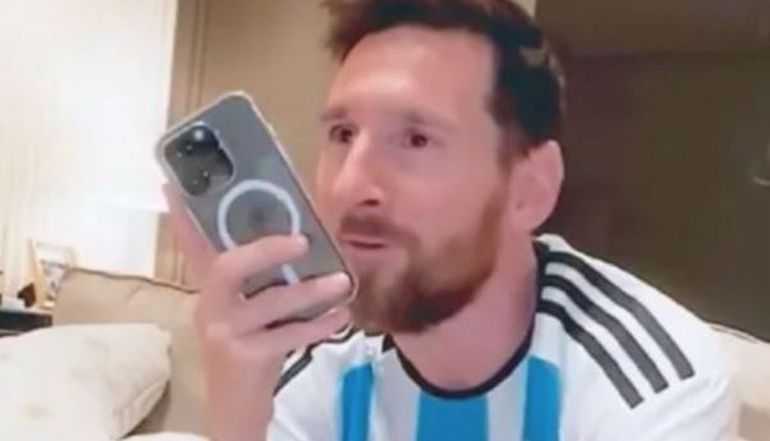 Tomás reveló nada menos la foto de perfil que tiene Messi en su WhatsApp. ¿Alguna conquista futbolística? ¿una selfie? Como no podía ser de otra forma, el capitán de la Selección Argentina tiene una imagen con Antonela Roccuzzo y sus tres hijos, todos vestidos con la celeste y blanca tras la obtención del Mundial de Qatar 2022.
