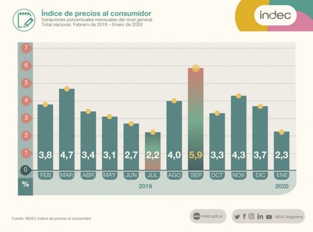 El 2,3% registrado en enero resultó más bajo que todas las expectativas de las consultoras privadas, que la habían estimado en torno al 3,5% y se convirtió en el incremento más bajo desde el 2,2% de julio del año pasado.