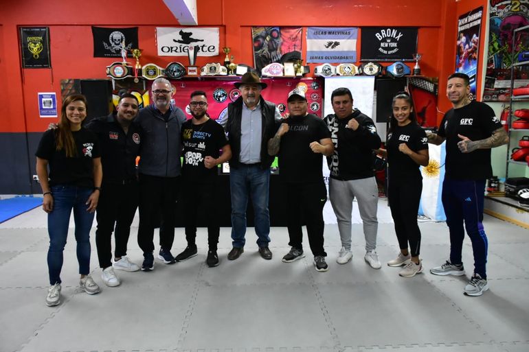 Encabezaron la presentación, el viceintendente Othar Macharashvili; el presidente de Comodoro Deportes, Hernán Martínez; Darío Achaval (Gym Fight Club y director patagónico de la K-Box Latino); y el promotor Leo Moreno (CFC Producciones).