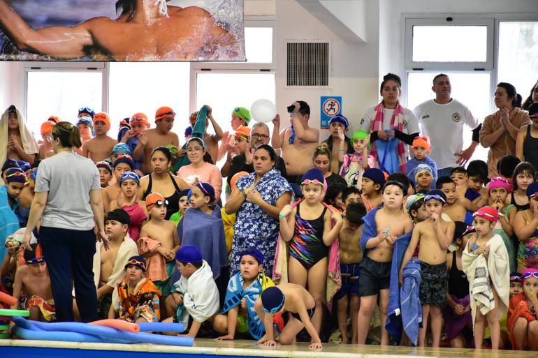 En la pileta del Club Ingeniero Huergo, este sábado se realizó el cierre de la primera etapa del programa "Natación Barrial" destinado a niños, pre adolescentes y adultos mayores. El 15 de julio, comenzará el segundo turno con los pre adolescentes y adultos.
