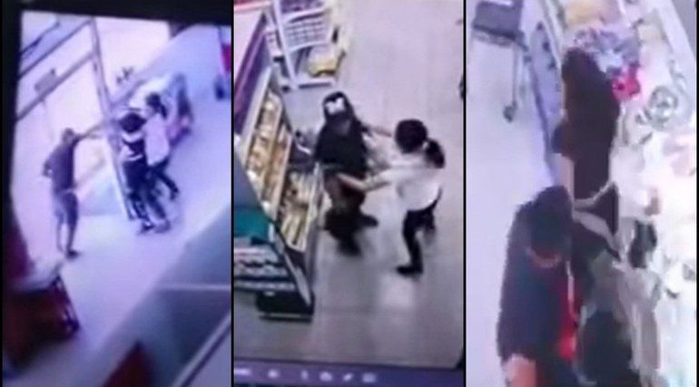 La violenta secuencia quedó registrada en una cámara de seguridad del supermercado y los dos terminaron tirados en el piso. Según publicó el portal local Diario Textual, en ese momento el hombre aprovechó para pegarle una patada en la cabeza a la chica antes de que por fin, entre el carnicero y una cajera, lograran reducirlo y sacárselo de encima.