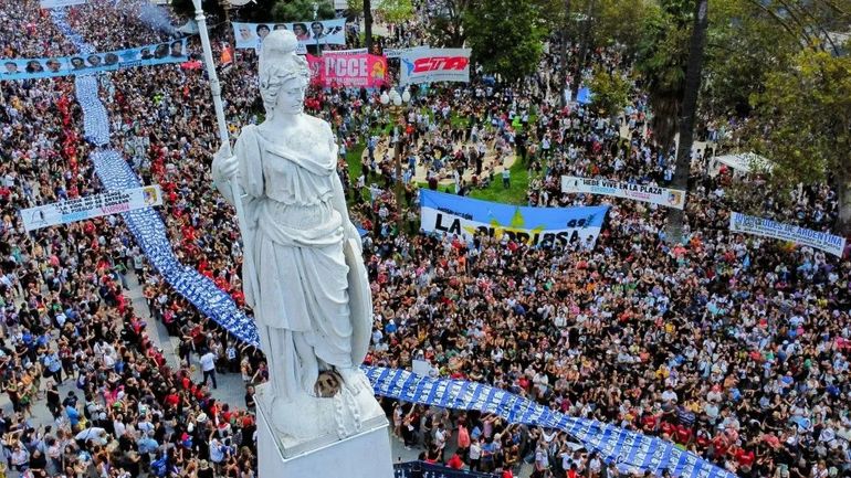 Centros de estudiantes de colegios secundarios y de universidades, trabajadores, jubilados. Todos estuvieron en la Plaza de Mayo. "Nos van limitando, nos quieren apagar, hacer sentir vulnerables, como que no podemos", opinó Florencia, una abogada de 29 años. Alberto, un jubilado, expresó una urgencia similar. Asiste a la marcha año a año, pero en 2024 notó una necesidad especial no solo porque este Gobierno, opinó, "nos está llevando a la ruina", sino por el atentado que sufrió una militante de H.I.J.O.S la semana pasada en Santa Fe. "Ya es mucho. ¿Qué más?", dijo a El Destape con un tono de resignación, aunque con la convicción de seguir luchando en la Plaza de Mayo.