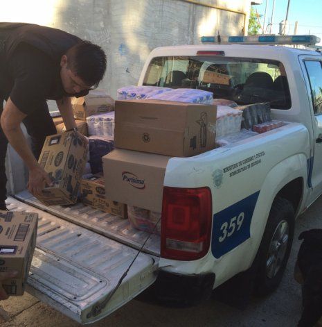 El comedor del Corazón, ubicado en el barrio Tiro Federal de Trelew, recibió fideos, yerba, azúcar, puré de tomate, harina, arvejas, latas de pate y arroz, de manos de la policía, entre quienes se encontraban el jefe y el subjefe de policía.