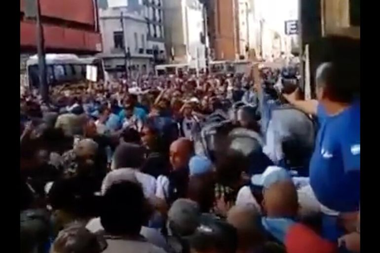 Los veteranos de guerra habían llegado al cruce de Corrientes y Florida, donde están las oficinas de la obra social de los jubilados y pensionados. Tal como se observa en las imágenes, al querer ingresar a las oficinas del PAMI, los efectivos de la Policía porteña rodearon el edificio y decidieron lanzar gas pimienta contra los excombatientes.