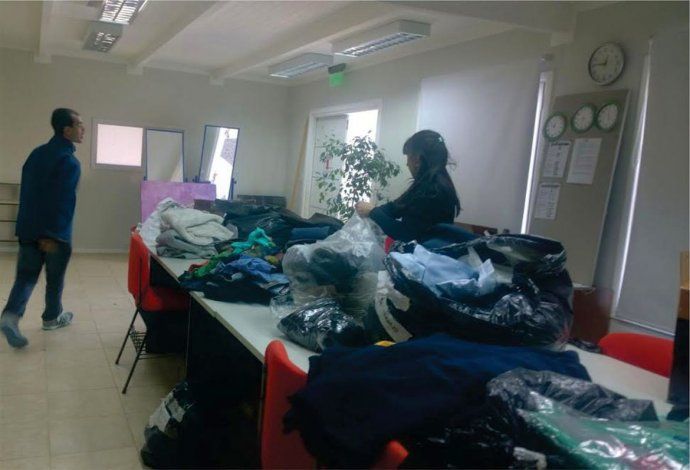 De forma paralela, el martes 4 de abril comenzaron a llegar las donaciones a la Fundación y todo el equipo de Crecer, áreas psico-social, administración, recepción y maestranza estuvo abocado a la clasificación de ropa, al armado de cajas con provisiones, artículos de limpieza doméstica e higiene personal, agua, pañales y frazadas. El principal inconveniente por esas horas, dado las el impacto que generó la tormenta en la traza vial de la ciudad era encontrar una forma para movilizarse en los barrios más periféricos. Fue a través de la Universidad Nacional de la Patagonia San Juan Bosco que se consiguió movilidad para llegar a cada familia con los artículos de prmera necesidad.