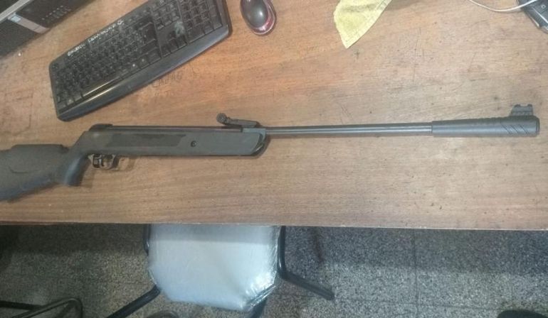 El sospechoso fue traslado a la dependencia policial junto al arma involucrada en el hecho, que quedó secuestrada en el marco de la investigación. Se trata de un rifle marca Apolo, modelo A800, sin número de serie a la vista, calibre 5.5.