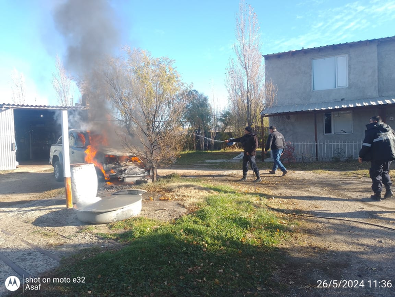 El personal de bomberos voluntarios de la zona, a cargo del cabo primero Gallego, acudió al lugar y logró sofocar el fuego. Sin embargo, el vehículo sufrió daños totales.