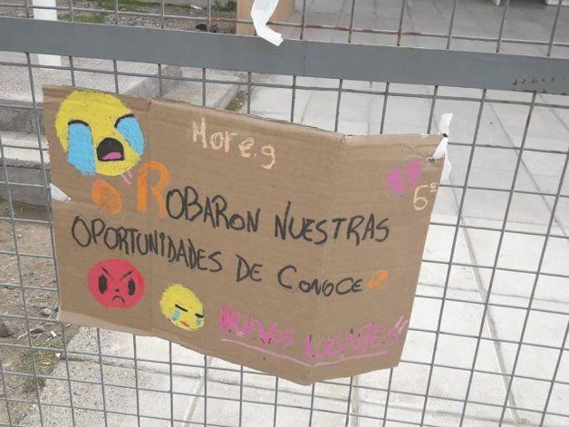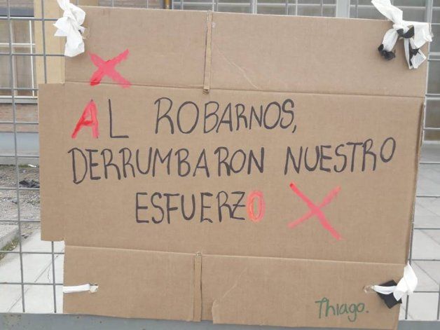 “Nos robaron la oportunidad de conocer nuevos lugares”, “aunque nos roben seguiremos luchando”, “Robaron el esfuerzo de nuestros padres”, forman parte de los mensajes de repudio que dejaron los estudiantes.