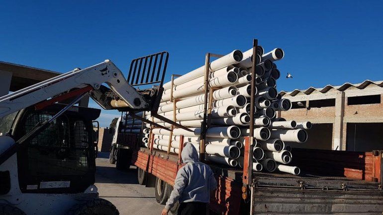 Gerardo Couto, responsable del departamento de ingeniería y proyectos se refirió a los materiaes, e indicó que: "se recibió una primera entrega del material que había prometido enviar el ENOHSA. La carga del camión semi remolque consta de 250 caños de 200 mm para líquido cloacal y 250 caños de 110 mm para realizar conexiones domiciliarias".