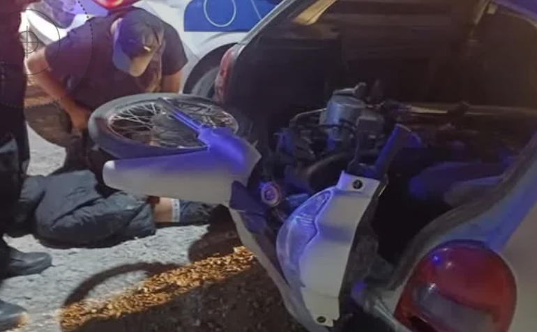 Un hombre fue demorado durante la madrugada de este lunes en Trelew luego de intentar escapar de un control policial mientras trasladaba una motocicleta en el baúl de un Chevrolet Corsa.