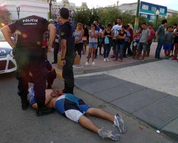 Ayer, cerca de las 20.30 horas, un hombre caminaba por la peatonal –en la intersección de la avenida Fontana y las calles 25 de mayo y España- de la ciudad de Trelew, cuando personal policial procedió a detenerlo.