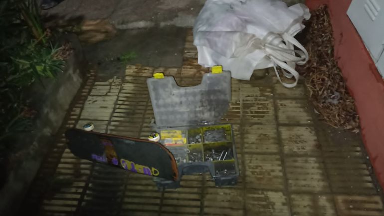 Los policías iniciaron un rastrillaje por las inmediaciones del lugar y sobre la calle José María Rodrigo al 600 divisaron caminando a un individuo cuyas características coincidían con las descriptas por el testigo. El sospechoso llevaba un bolsón de color blanco, una caja de herramientas y una patineta.