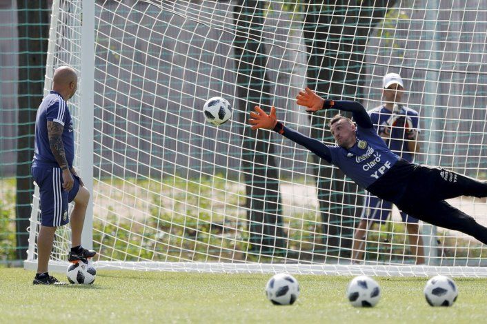 Wilfredo Caballero fue el que más se lució al menos en esos primeros minutos que la prensa pudo presenciar en el centro de entrenamiento de Bronnitsy antes de almorzar y viajar rumbo a Kazán.