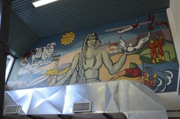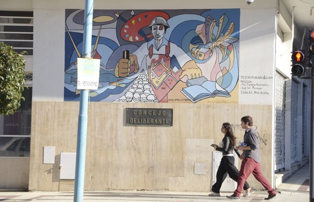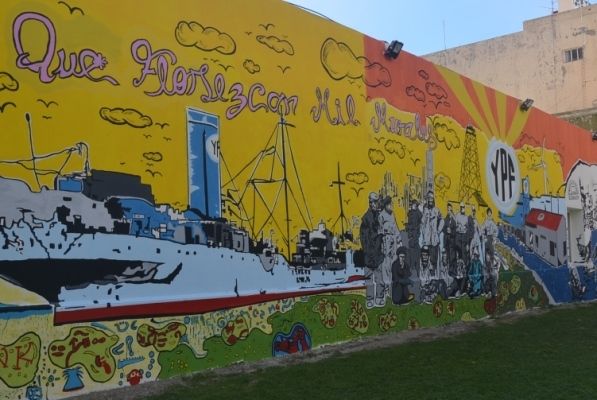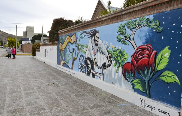 En los murales habitan también ex combatientes de Malvinas, los niños en sus propios trazos infantiles, los mapuches y tehuelches, así como trabajadores de diferentes actividades que surgen del paisaje pintado en el mural del Concejo Deliberante. Lo realizó la artista Carolina Barrientos y es una de las obras más importantes en la ciudad por su extensión.
