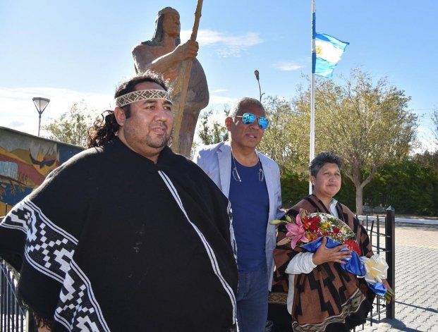El acto organizado por la comisión de fomento tuvo lugar en la plazoleta donde se levanta la imponente escultura de un tehuelche vestido con su quillango y portando una lanza.