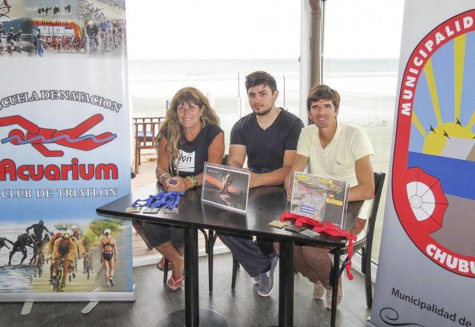 Durante la presentación realizada ayer en la villa balnearia estuvieron, Ignacio Do Brito, el secretario de Deportes de la Municipalidad de Rada Tilly Jorge Mérida y la coordinadora deportiva de Acuarium Nancy Regina.