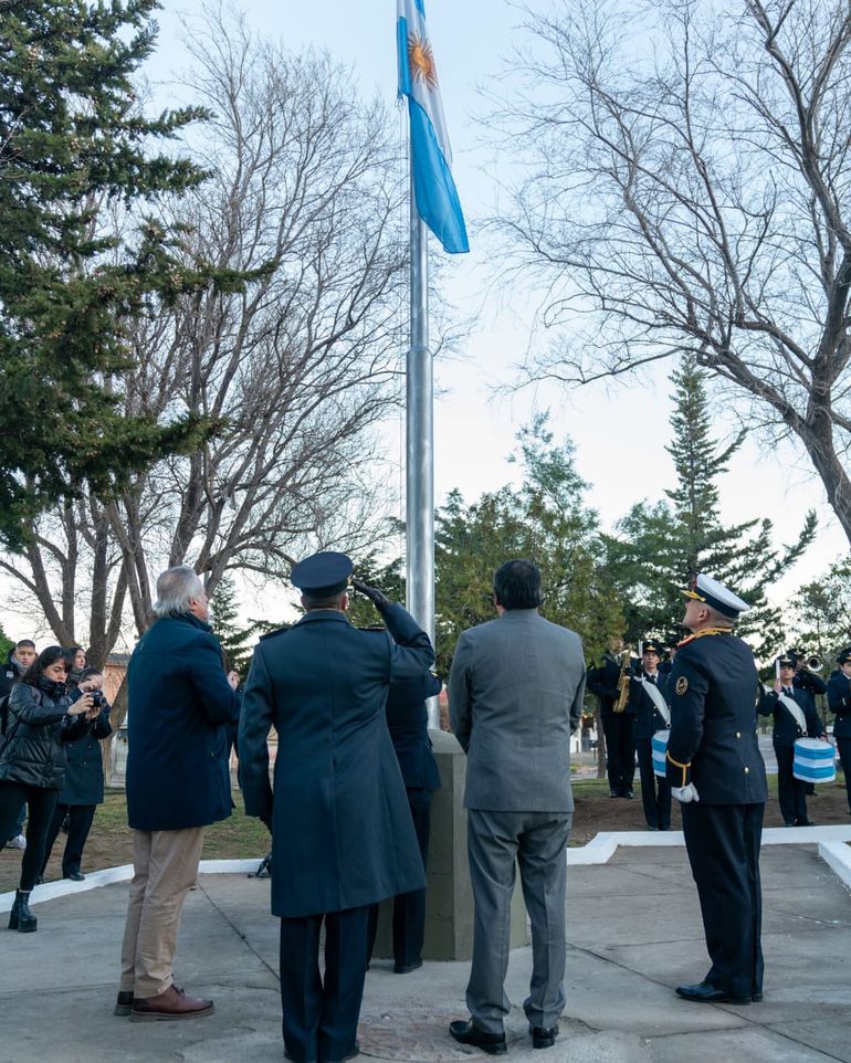 Con una plaza concurrida, miembros del Ejecutivo Municipal y autoridades de las Fuerzas Armadas izaron la bandera, mientras la banda de la Fuerza Aérea “Capitán Luis Candelaria”, interpretaba y entonaba las estrofas del Himno Nacional Argentino.