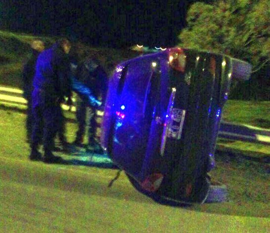 Horas más tarde, a las 03:15 de la madrugada se produjo un vuelco sobre Ruta 3 protagonizado por un Peugeot 207, dominio MCD 485 conducido por un adulto identificado como Bernando Cisterna, quien también sufrió lesiones leves como consecuencia de los tumbos que dio el rodado que transitaba en dirección sur norte y quedó volcado sobre su lateral izquierdo.