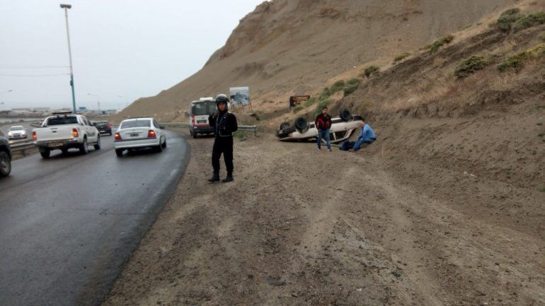 El primero de los accidentes ocurrió sobre Ruta 3, cuando el conductor de un Peugeot 504, quien iba solo, perdió el control del automóvil y volcó en proximidades de Eureka. Según informaron desde el área de Tránsito a El Patagónico, el accidente se habría producido por el asfalto resbaladizo.