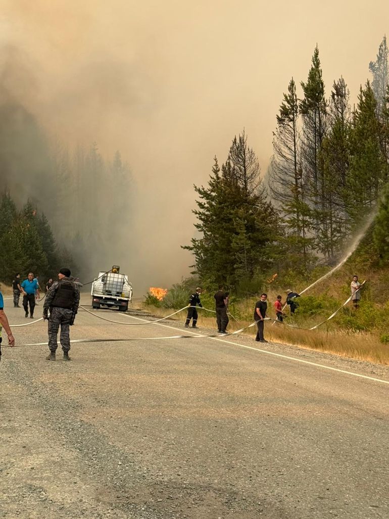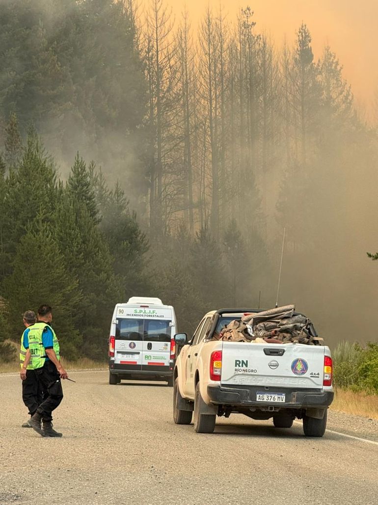 Este jueves por la tarde, el operativo provincial de emergencia evacuó de manera preventiva a los vecinos de la zona de La Angostura, en el marco del avance del incendio y para resguardar la seguridad de las familias.