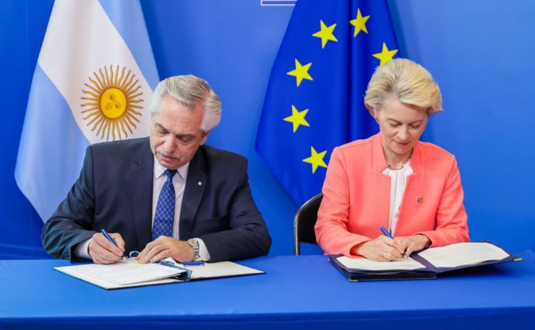 El presidente Alberto Fernández se reunió hoy en el edificio Berlaymont de Bruselas con la presidenta de la Comisión Europea, Ursula Von der Leyen, donde firmaron un Memorándum de Entendimiento sobre Cooperación en materia de energía entre la Argentina y la Unión Europea.