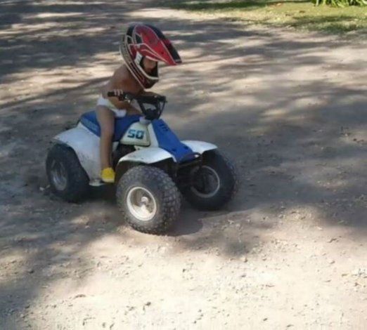 El corredor deleitó con dos videos de su nene manejando el rodado en pañales, demostrando una gran habilidad para su corta edad y dejando en claro que ya lleva la pasión de los "fierros" en la sangre.