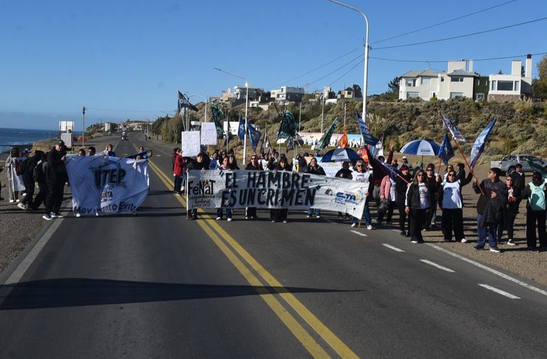 En Caleta Olivia, la movilización comenzó alrededor de las 10 y se extendió hasta las primeras horas de la tarde, siendo protagonizada por alrededor de un centenar de referentes del Polo Obrero, la CTA y el Movimiento Evita.