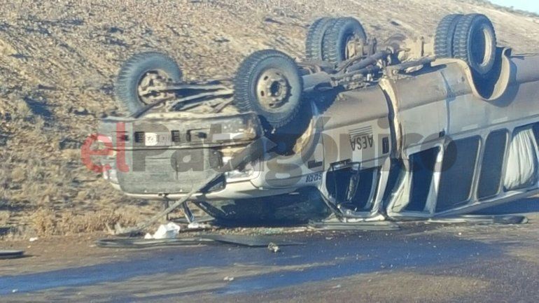 El accidente ocurrió alrededor de las 5:30 de hoy, según testigos ocasionales que transitaban por la zona, la camioneta – destinada al traslado de personal- chocó contra un auto y volcó.