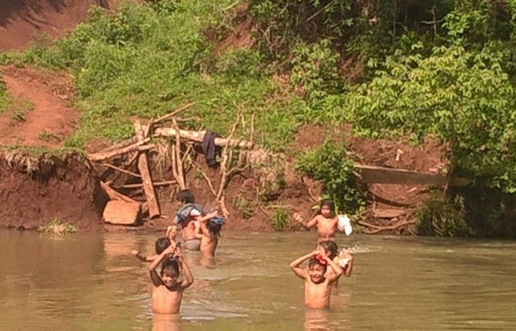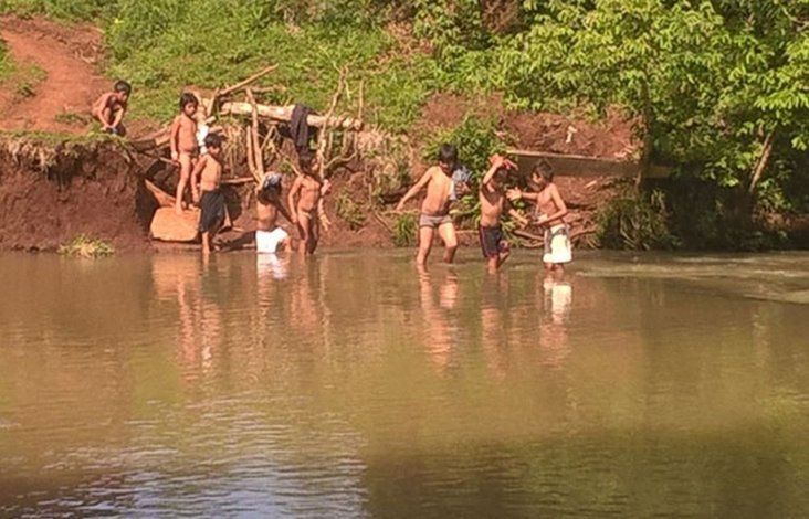 Niños y docentes que integran la comunidad guaraní reclaman la construcción de un puente. La aldea está conformada por unas 26 familias y se ubica en la región noroeste de Misiones.
