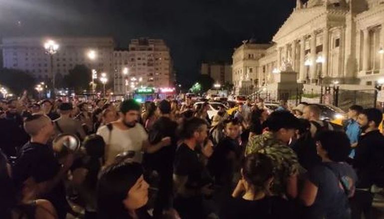 Con presencia policial, el Congreso volvió a convertirse en el epicentro de las manifestaciones, con vecinos autoconvocados que llevan adelante un cacerolazo espontaneo contra las medidas económicas y políticas que impulsa el gobierno actual.