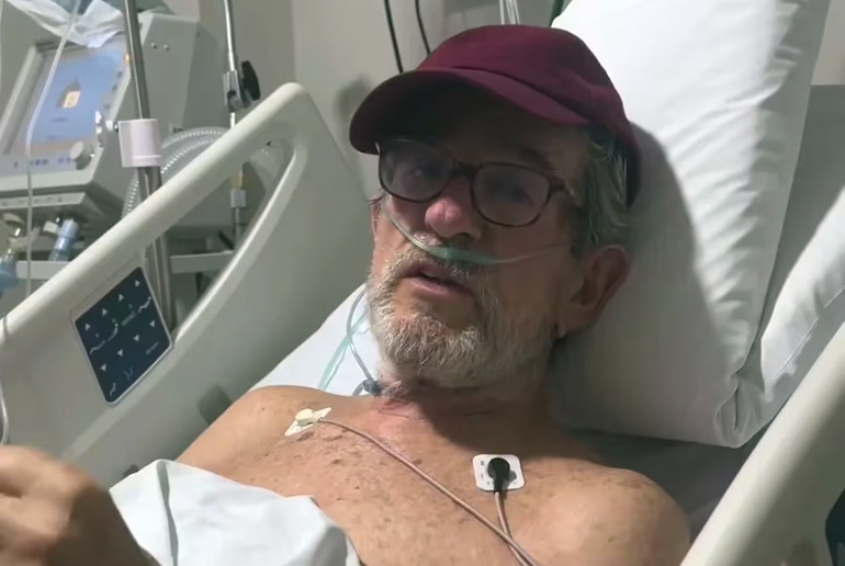 El artista, desde la cama de la clínica y de gorra, saludó a sus seguidores. “Amigos de Instagram, ténganme un poquito de paciencia, si tienen ganas o sino cambien porque no puedo escribir”, comentó, de buen humor, quien permanece en la clínica por una neumonía bilateral.