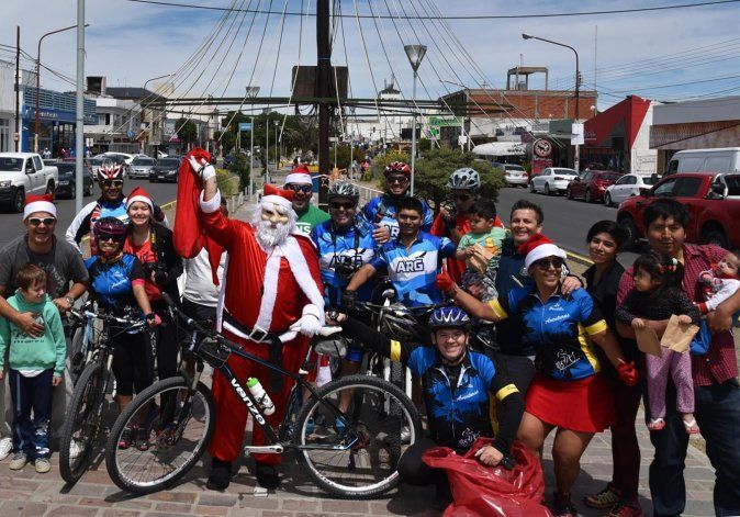 Su figura atrajo a decenas de chicos y en pocos minutos se vació la bolsa que contenía los regalos. Así los cicloturistas se sintieron gratificados con la iniciativa.