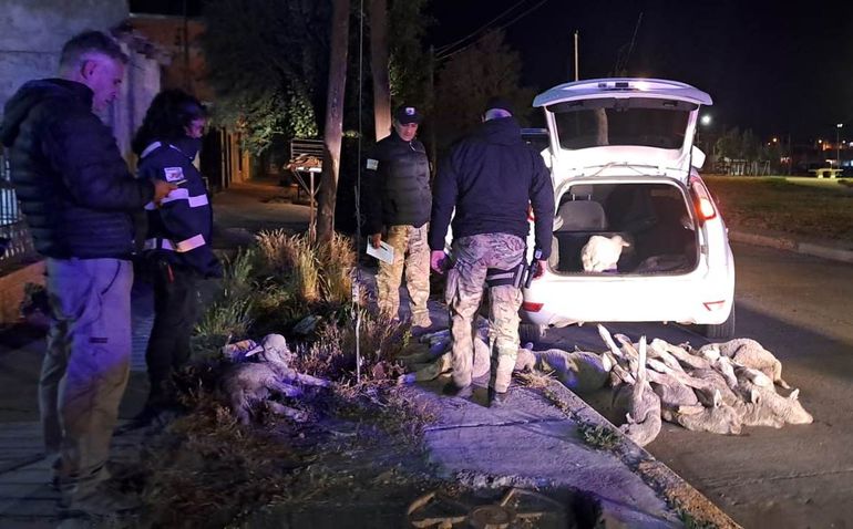 Puesto en conocimiento el Juzgado Provincial de Primera Instancia Nº 1 de Río Gallegos, se dispuso la requisa vehicular, diligencia que permitió constatar en el interior del rodado la presencia de 11 animales ovinos, de los cuales 7 eran corderas y 4 corderos, estos últimos sin vida, todos sin marca ni señal visible, encontrándose además atados de sus extremidades.