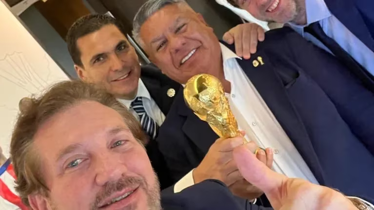 “Era imposible conseguir los votos, era imposible conseguir la inversión para organizar un Mundial de tal magnitud y, sin embargo, con su firmeza y con su convicción, trabajando uno por uno, logró que Sudamérica, que Conmebol tenga su Mundial y que estos tres países tan representativos, por sobre todas las cosas Uruguay, donde se jugó el primer Mundial, podamos celebrarlo en toda Sudamérica, ser sedes sin invertir nada porque las estructuras ya las tienen, en un momento difícil que vive por sobre todas las cosas nuestro país”, se consoló Tapia.