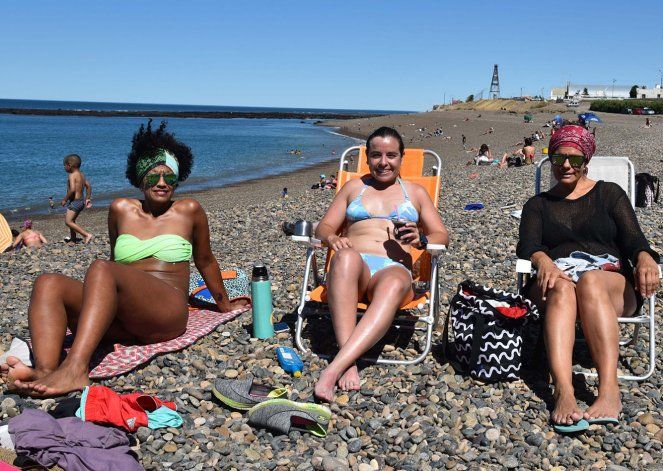 La temperatura ascendió hasta los 28 grados en la zona céntrica y centenares de caletenses aprovecharon la proximidad de la costa atlántica para disfrutar del sol, del agua y de la brisa marina, tanto en los dos balnearios que cuentan con guardavidas (costanera y las roquitas), como así también de las playas algo alejadas de la zona urbana.