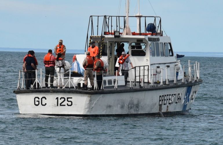 La imagen de la virgen fue llevada por el guardacostas de la Prefectura Naval desde el puerto Caleta Paula hasta el Club Náutico.