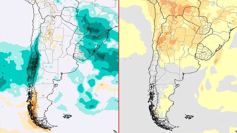 Esta característica no sólo se observa sobre el centro y norte de Argentina, sino que se extiende a todo el sur de Sudamérica, desde Bolivia, pasando por Paraguay, Uruguay y Brasil, con zonas que podrían presentarse con temperaturas extremadamente superiores a los promedios, particularmente sobre Bolivia y Paraguay.