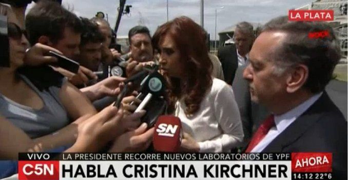 La Presidenta Cristina Kirchner recorrió este jueves las obras de la última etapa del nuevo Centro Científico Tecnológico YPF que deberá inaugurar el próximo gobierno a mediados de 2016. Cristina estuvo acompañada por el ministro de Economía, Axel Kicillof; el jefe de Gabinete, Aníbal Fernández; el secretario General de la presidencia, Eduardo "Wado" de Pedro; el gobernador bonaerense Daniel Scioli; el ministro de Planificación Federal, Julio De Vido; y el titular de YPF, Miguel Galuccio.