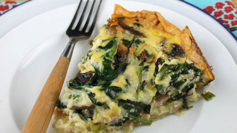 Pondremos la sartén junto al aceite, sobre fuego medio, agregaremos las cebollas cortadas en juliana y rehogaremos; una vez tiernas las cebollas incorporaremos las espinacas y dejaremos cocinar unos minutos más, luego reservaremos. En la misma sartén sin agregar aceite lo volveremos al fuego y desgrasaremos la panceta, una vez que esté dorada reservaremos sobre papel secante.