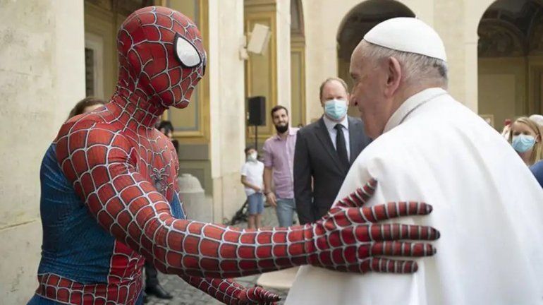 El Papa Francisco celebraba la audiencia general en el Vaticano ante la presencia de peregrinos que escuchaban atentamente sus palabras. La escena sería normal si no fuese porque entre los participantes, en la segunda fila de sillas, se encontraba un joven con el atuendo del Hombre Araña. Al finalizar el acto el joven y el sumo pontífice estrecharon sus manos, hablaron e intercambiaron regalos.