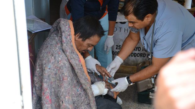 Pese al diagnóstico el profesional aseguró que no lo iban a poder trasladar al hospital ya que no había ninguna persona que se haga responsable del hombre. "Es un caso social, no es una patología. En el hospital no hay cama, no hay lugares para los casos graves, menos para este tipo de situación", detalló el médico ante la presentes.