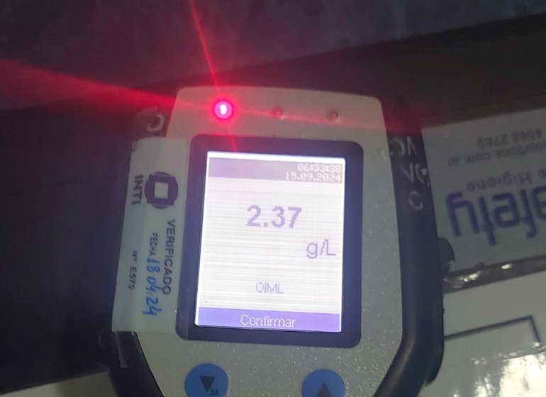 Tras unos minutos de resistencia, el conductor accedió a realizar la prueba de alcoholemia, la cual arrojó un resultado positivo de 2.37 gramos de alcohol por litro de sangre, muy por encima del límite permitido por la Ley 24.449, artículo 72 inciso A.