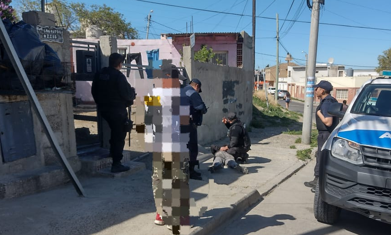 Según el informe policial, alrededor de las 14:10 de este domingo se recibió una llamada anónima informando que dos hombres estaban armados en el Pasaje de Los Patos 2255. Al llegar al lugar, los oficiales identificaron a dos hombres. Uno de ellos era Lucas Rafael Tascón, quien intentó huir pero fue detenido.