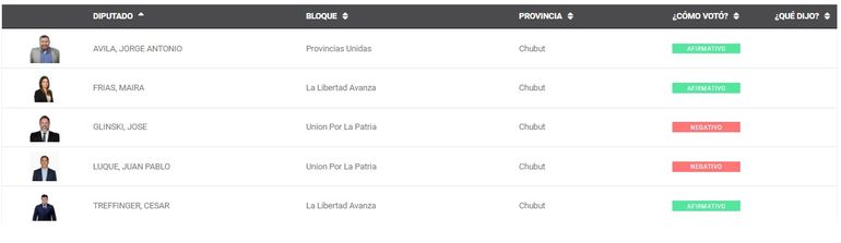 De los cinco diputados nacionales por Chubut, como se preveía, votaron a favor del proyecto los integrantes de la Libertad Avanza, César Treffinger y Maira Frías. A ellos se sumó el voto afirmativo del dirigente petrolero y diputado por Encuentro Federal, Jorge “Loma” Avila.