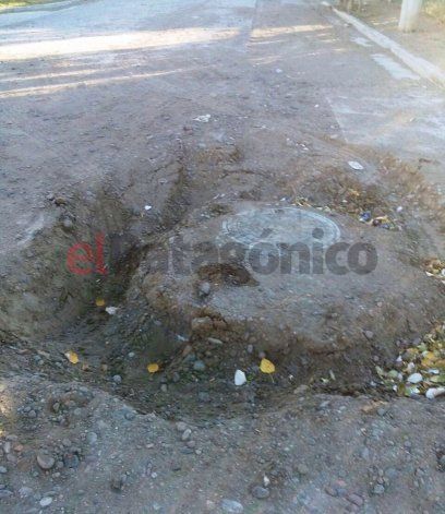 Sobre la calle La Pulpería del barrio Ciudadela se realizaron trabajos de reparación de una red cloacal, a raíz de lo cual comenzó a ceder la calle y dejando alrededor de la tapa de cloaca un agujero.